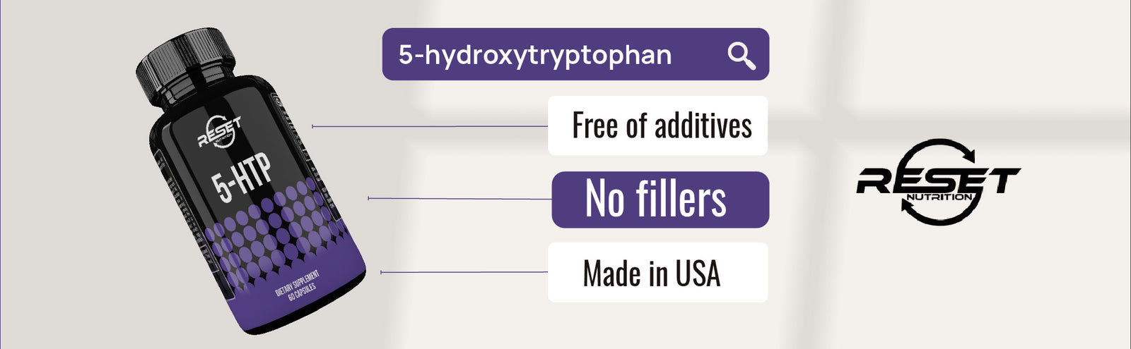 Unlike other products, RESET NUTRITION 5-HTP 100 mg delivers effective results with just 2 capsules per day, ensuring convenience and efficiency. Additionally, it is 100% natural, non-GMO, and manufactured in the USA under strict GMP quality standards, guaranteeing safety and purity in every dose.