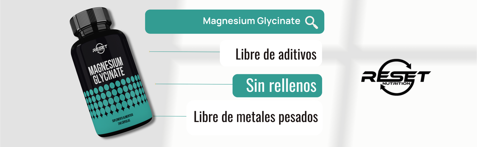 Magnesium Glycinate: 400 mg per serving (equivalent to 60 mg of elemental magnesium).