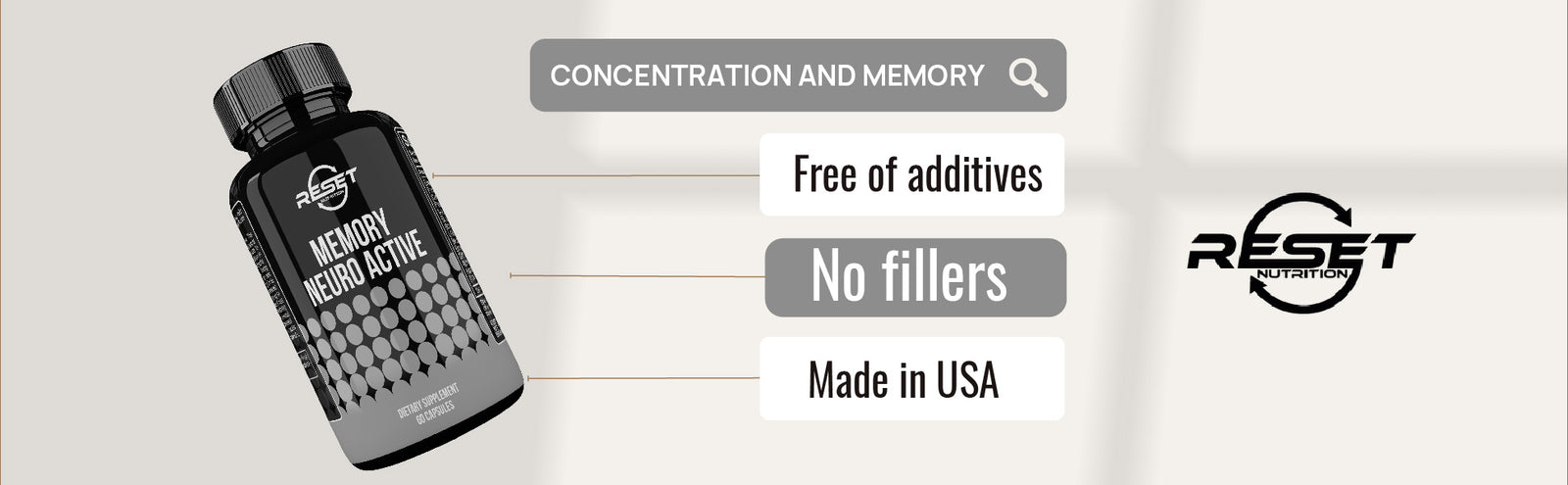 Mejora el enfoque, la memoria y la agilidad mental con RESET NUTRITION Memory Neuro Active, una fórmula avanzada diseñada para optimizar el rendimiento cognitivo y apoyar el aprendizaje.